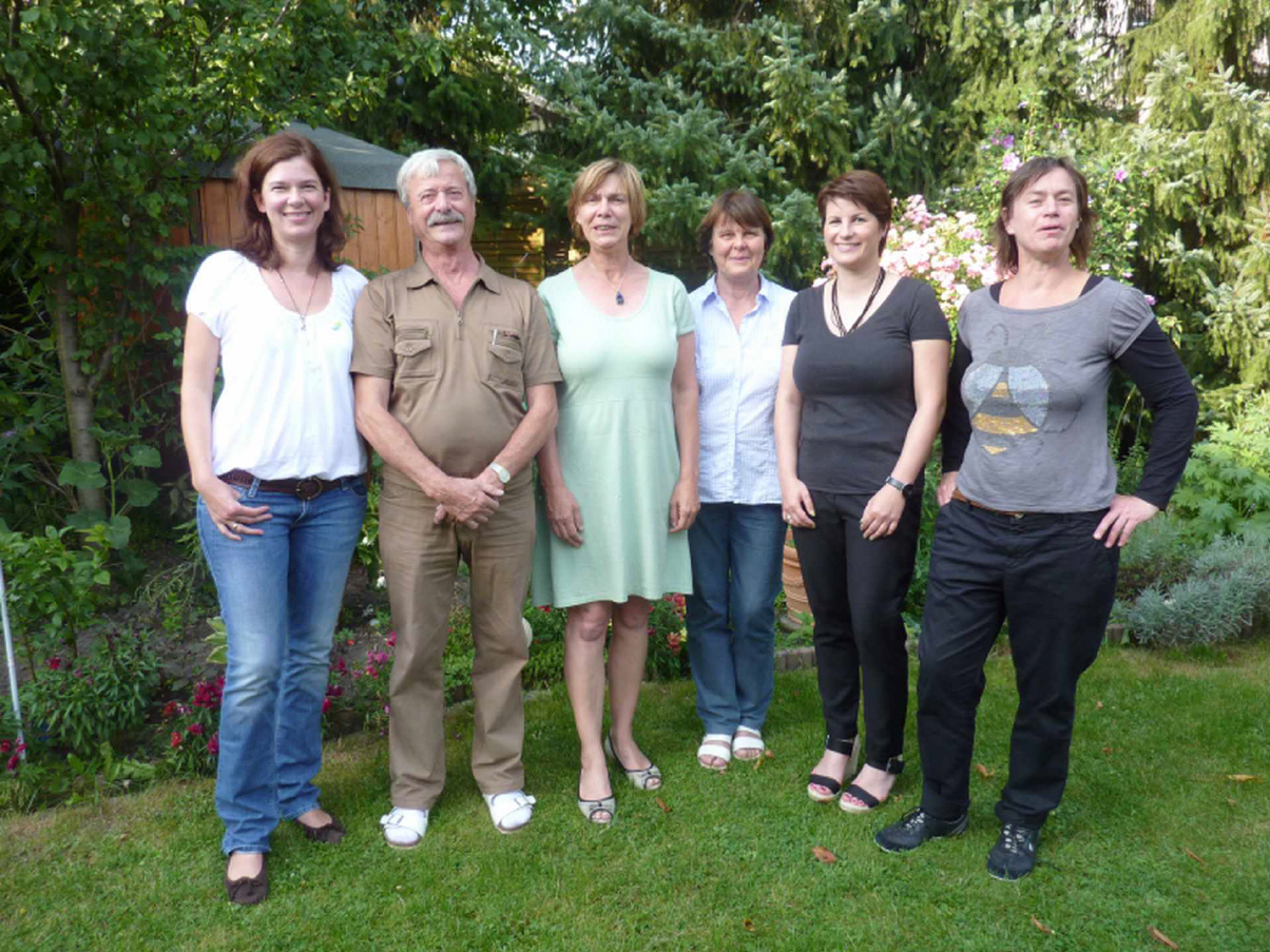 Zu Bild 1: v.l. Heidrun Lieske (Gastgeberin), Pia Kamps (Biol. Station Mittlere Wupper), Andreas Rehm (Grüne aus Haan), Ursula Linda Zarniko